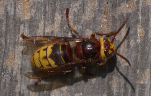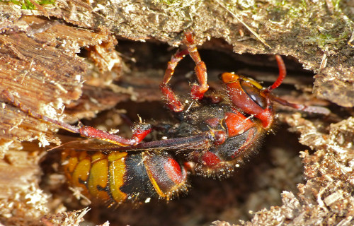 Like most of its kind, the captivating European Hornet lives as a eusocial animal. It constructs nests, which it makes from chewed paper. Most colonies contain between 200 – 400 workers, along with a handful of males and a single queen. Larger nest, though, may contain as many as 1,000 workers.
