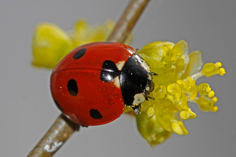 Undoubtedly, however, it’s the gorgeous pattern of coloring evolved by the Seven-Spotted Ladybird that usually garners the most attention. Being the same in both sexes, the wing covers, known as elytra, manifest either bright red or orange, with seven prominent black spots easily seen.